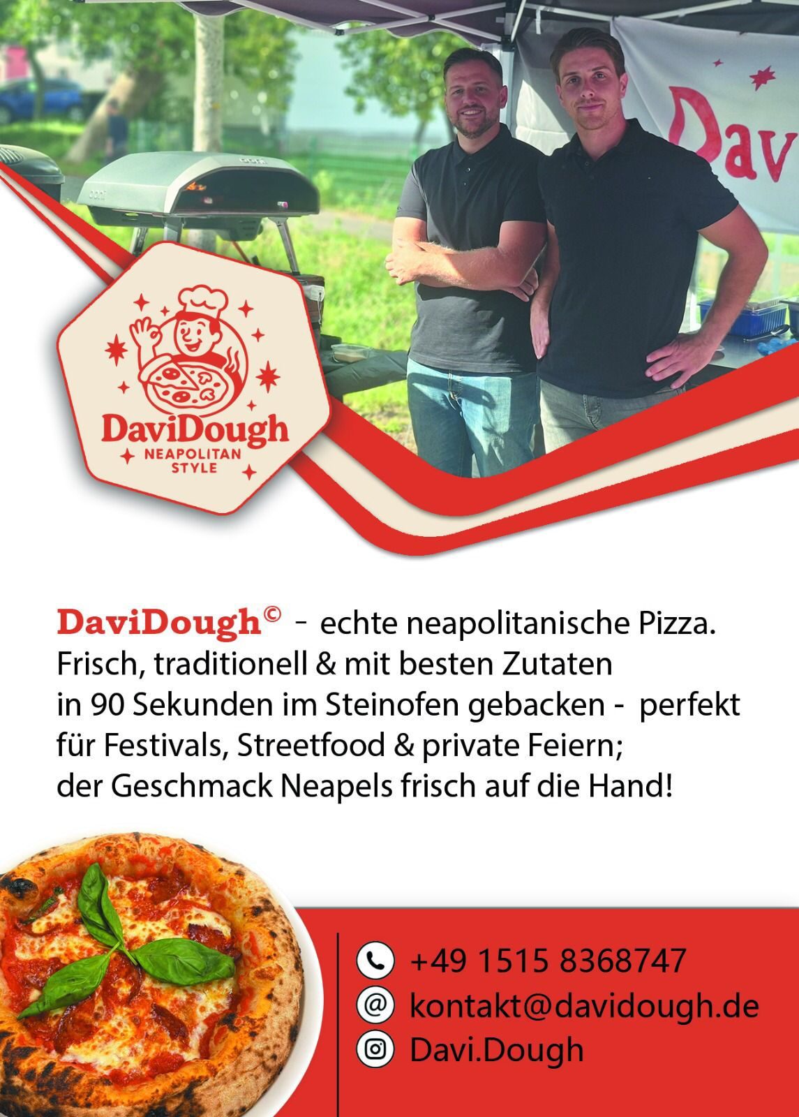 Dieses Jahr bieten wir zusätzlich zu Getränken und Snacks (Belegte Brötchen, Chips, Nüsse etc....) beste Pizza von unseren Partnern "DaviDough" frisch vor Ort zubereitet. Zusätzlich befindet sich die Location in der Innenstadt und umliegend, gibt es ausreichend Imbisse und Restaurants.